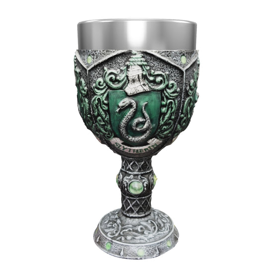 Symbolized by the serpent, Salazar Slytherin valued cunning and ambition, and his house claimed many of the darkest witches and wizards in history, including Lord Voldemort. Show your house loyalty with this elegant 10 oz decor goblet.