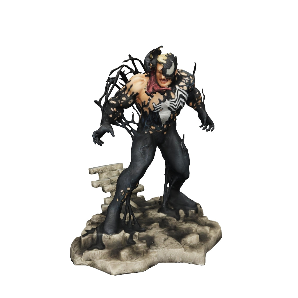 Half Brock. Half symbiote. All evil! Can you smell what the Brock is cooking? Peter Parker-hating Eddie Brock reunites with his partner in hate, the alien symbiote, to become Venom once more in the Marvel Gallery PVC statue line! Measuring approximately 9-inches tall, this statue depicts Venom mid-merge, with Brock visible under the symbiote, and is made of a high-grade plastic with detailed sculpting and paint applications. The statue comes packaged in a full-color window box.