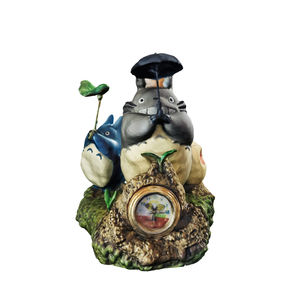 Big Totoro, Medium Totoro, and Small Totoro are doing the Dondoko Dance to grow the plants! Standing nearly 4-inches tall, this desk clock features an analog clock with a unique Totoro themed face. Highly detailed at every angle, this My Neighbor Totoro Dondoko Dance Statue Desk Clock makes am attractive, functional addition to your collection. Ages 15 and up.