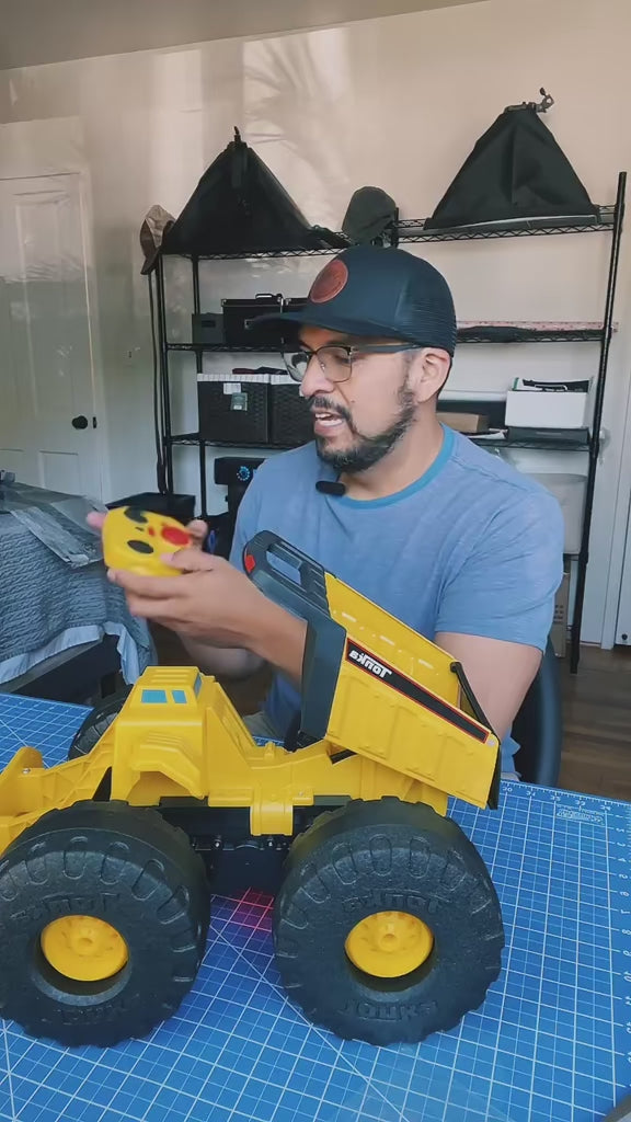 - This durable RC truck also comes with 4-in-1 monster action–including motorized hauling and dumping, kid-powered front plowing, and epic, 360° monster stunts guaranteed to impress your friends